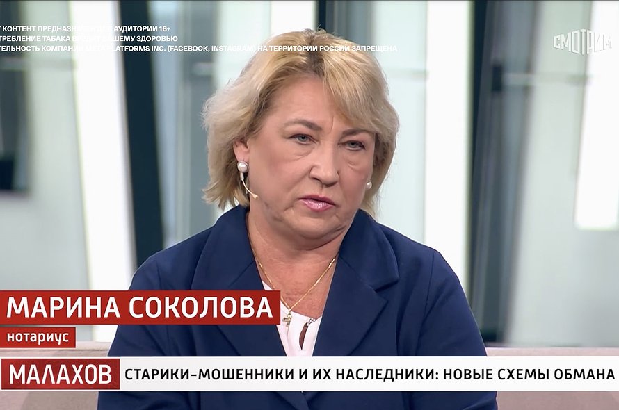 Как не остаться без жилья и без денег? В программе «Малахов» на канале «Россия 1» показали истории добросовестных покупателей квартир, сделки которых были оспорены якобы введенными в заблуждение продавцами. Главный вывод программы — от таких историй защитит нотариальная форма сделки. Экспертом программы выступила нотариус г. Москвы Марина Соколова.